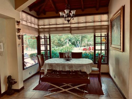 Sus acabados son de lujo, sus grandes ventanales, los tumbados de madera, sus planimétricos espacios verdes y sus hermosas jardienes, le dan el tinte de una propiedad exclusiva y única en el sector, ideal para el funcionamiento de un proyecto turístico, un restaurante de lujo, un lugar para el desarrollo de eventos sociales, o simplemente para vivir cómodamente en el campo encontrándose muy cerca de la ciudad.
